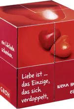 × Wunschwürfel „Liebe ist...“In allen Ecken soll Liebe drin stecken! Magischer Würfel zum Klappen mit versteckten Liebes-Botschaften. Ein tolle Überraschung nicht nur zum Valentinstag. Für alle, die unser Herz berühren. Verfügbarkeit jetzt prüfen