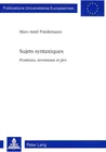 Sujets syntaxiques se concentre sur les positions structurelles de sujet, les éléments susceptibles d'occuper ces positions, ainsi que sur les divers processus syntaxiques qui les affectent. L'étude adopte une approche comparative qui, entre autres, prend en considération plusieurs langues romanes et germaniques, mais distingue aussi différentes variétés du français. En outre, elle recourt à des données spontanées de l'acquisition du français comme langue maternelle en tant que matériel empirique ultérieur qui permet, par ses propriétés particulières, de raffiner l'argumentation théorique. Le travail voue une attention particulière à la position canonique de l'argument externe en français et suggère une analyse différenciée des inversions du sujet et du statut des pronoms sujet (prononcés ou nuls). L'image globale obtenue est formulée sous forme de principes et paramètres, et soutient l'idée de simplicité que le récent programme minimaliste chomskyen attribue au système computationnel de la faculté du langage.