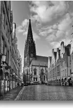 Special-Edition der Leinwand „Die St. Lamberti-Kirche am Prinzipalmarkt in Münster“ im Format „45x30“ als perfektes Geschenk oder als Dekoration für das Schlafzimmer, Büro oder Wohnzimmer.