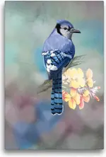 Special-Edition der Leinwand „Blauhäher“ im Format „30x45“ als perfektes Geschenk oder als Dekoration für das Schlafzimmer, Büro oder Wohnzimmer.