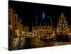 Premium Textil-Leinwand 90 cm x 60 cm quer, Markt mit Rathaus zu Weihnachten | Wandbild, Bild auf Keilrahmen, Fertigbild auf echter Leinwand, Leinwanddruck