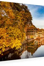 Premium Textil-Leinwand 75 cm x 50 cm quer, La Petite France im Herbst | Wandbild, Bild auf Keilrahmen, Fertigbild auf echter Leinwand, Leinwanddruck