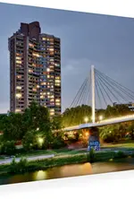 Premium Textil-Leinwand 45 cm x 30 cm quer, Wohnturm an der Neckarpromenade | Wandbild, Bild auf Keilrahmen, Fertigbild auf echter Leinwand, Leinwanddruck