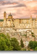 Special-Edition der Leinwand „Urbino Abendstimmung“ im Format „75x50“ als perfektes Geschenk oder als Dekoration für das Schlafzimmer, Büro oder Wohnzimmer.