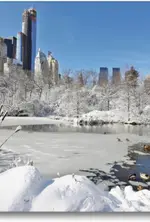 Special-Edition der Leinwand „New York im Frost und Schnee“ im Format „120x80“ als perfektes Geschenk oder als Dekoration für das Schlafzimmer, Büro oder Wohnzimmer.