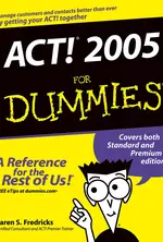 Written by Karen S. Fredricks, an ACT! Certified Consultant, ACT! Premier Trainer, and self-professed ACT! FanACTic, ACT!2005 For Dummies covers both ACT! Standard Edition 2005 andACT! Premium Edition 2005. It shows and tells you how to: